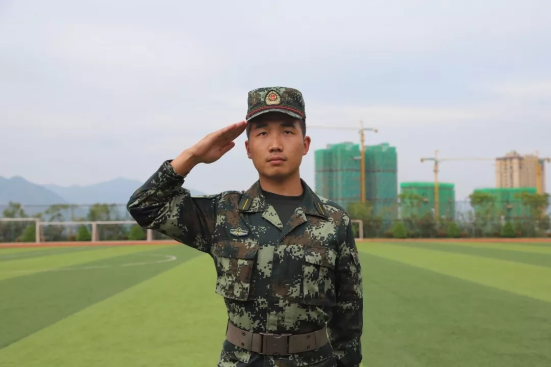 2016年入伍,服役于武警山西总队,2018年退役后继续返校上学。他坦言,参加本次学校的军训任务,其实是对自己的一种历练。退伍一年,在身份上已经完成了转变。但是有很多已经融到骨子里的东西,虽然是永远变不了的,但是却会遗忘。通过本次军训,再次穿上了熟悉的迷彩,和众多教官一起,让他好像又回到了从前的日子。同时也记起了,曾经作为山西总队一员的光荣与自豪。军旅生活虽然短暂,而且充满了疲惫的,痛苦的回忆,但是却将很多东西刻在了他的生命中。他将永远铭记他们曾经所为之努力的,“忠于祖国,忠于人民,团结拼搏,勇士必胜”。