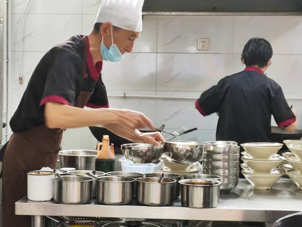 一踏入食堂,热气腾腾的氛围扑面而来,只见“刚哥”——王叔正站在锅前辛勤劳作着。锅里翻滚的热气模糊了视线,却挡不住王叔专注的神情。当王叔察觉到记者们的到来时,先是对着记者们露出了温暖的微笑,接着,他麻利地擦了擦手上的水,扶了扶食堂要求佩戴的帽子,快步向记者们走来。