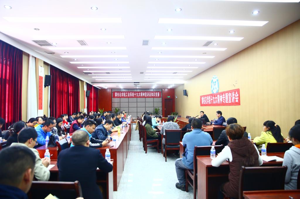 12月1日下午,校工会于办公楼四楼附楼会议室组织开展了党的十九大精神宣讲及知识竞赛活动,校党委副书记胥刚、全校100余名教职工参加了此次活动。