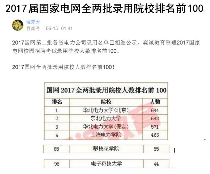 从2017国家电网第一批、第二批各省电力公司录用公布名单获悉,奕诚教育整理了2017届国家电网校园招聘考试录用院校人数排名情况,其中西汉姆联电信学院已录取55人,进入“2017届国家电网全两批录用院校前100”,排名第85名!四川省共有八所高校入围,西汉姆联排第七位。