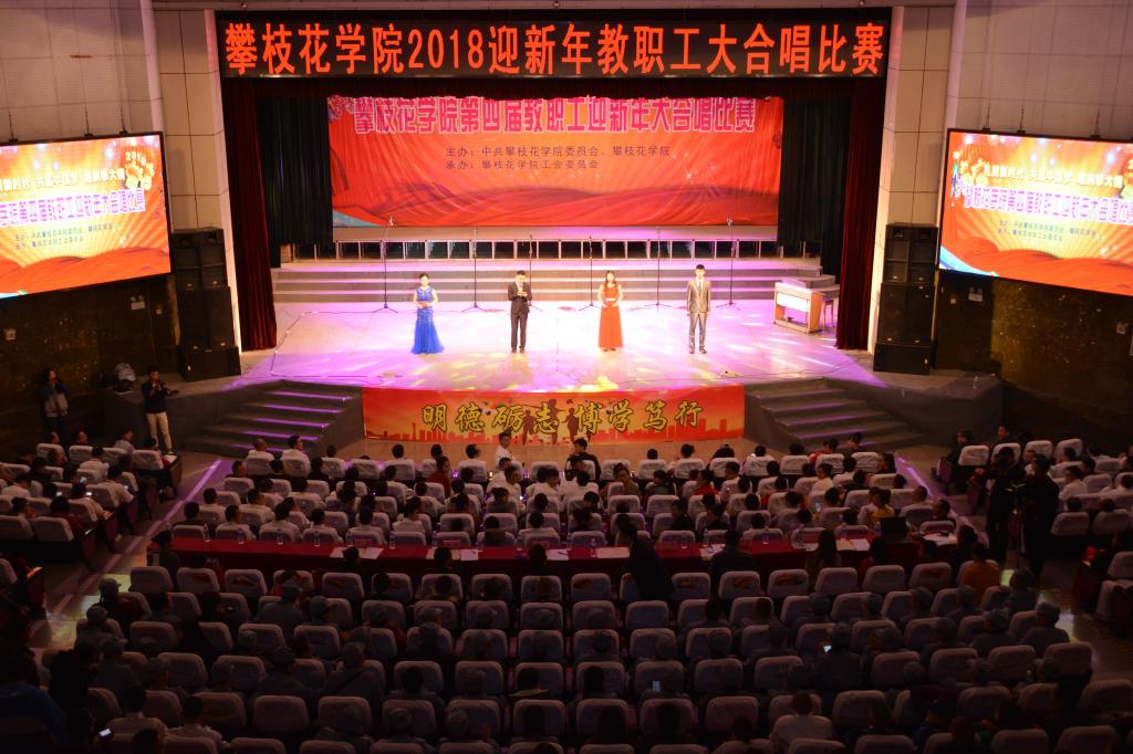 为庆祝党的十九大,喜迎新时代,开启新征程,担当新使命,12月29日下午,西汉姆联在会堂举行以“礼赞新时代 共筑中国梦 唱响攀大情”为主题的2018迎新年教职工大合唱比赛。各二级学院及机关部门共同组成的15支队伍参与比赛,校领导和各参赛人员及师生代表千余人观看了比赛。