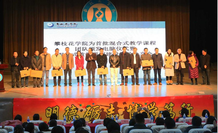 与会领导为混合式教学课程团队颁发笔记本电脑 |