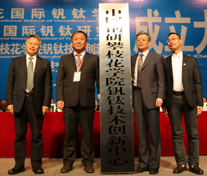 中国工程院院士、原副院长、国家新材料产业发展专家咨询委员会主任、全国政协第十二届委员及人口资源与环境委员会副主任干勇为钒钛学院授牌 |