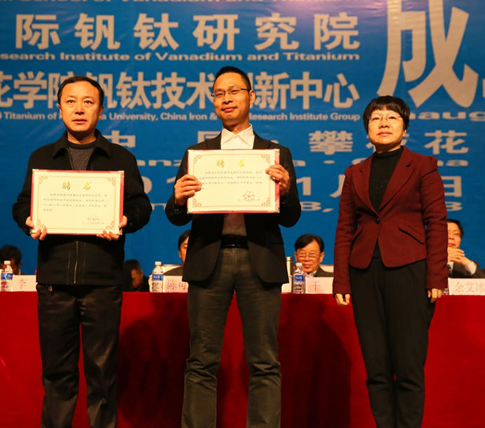 王曙光宣读了聘任钒钛学院、研究院学术委员会委员和院长、副院长的聘任文件,市人民政府副市长马晓凤代表市委、市政府为学术委员会主任和院长颁发聘书,市人大常委会副主任陈可红、市政协副主席李明分别为学术委员会副主任、学术委员会委员代表颁发聘书。王曙光代表学校现场与中国钢研科技集团、中国科学院过程所等7家单位分别签订合作共建框架协议。
