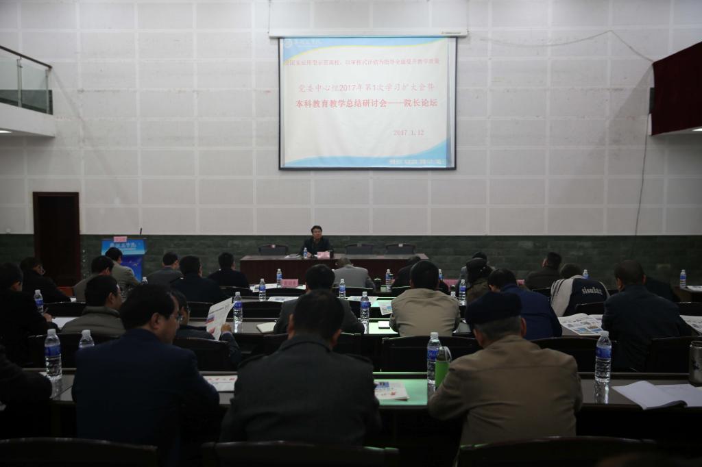 1月12日,西汉姆联在学术报告厅召开党委中心组2017年第1次学习扩大会暨本科教育教学总结研讨会——院长论坛。会议围绕“为建设国家应用型示范高校,以审核式评估为指导全面提升教育质量”的主题,结合学校实际工作展开研讨。党委书记肖立军作重要讲话,党委副书记、校长黄双华主持会议。