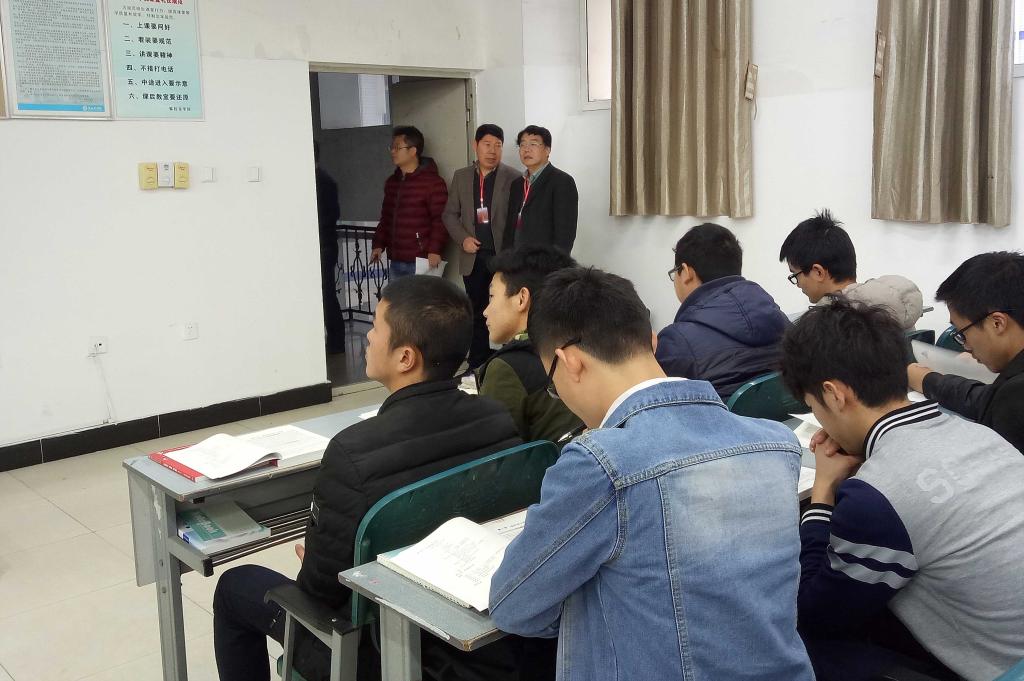 黄双华带队检查了本部第二教学楼和西苑的教学情况,对教师上课情况和学生出勤率进行了仔细察看。