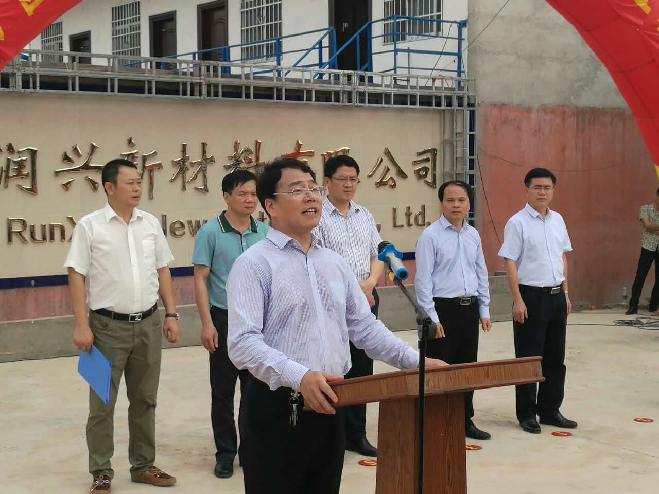 5月3日上午,黄双华和罗宗光共同为西汉姆联激励科技人员创新创业的试点项目——广西润兴新材料公司开工剪彩。
