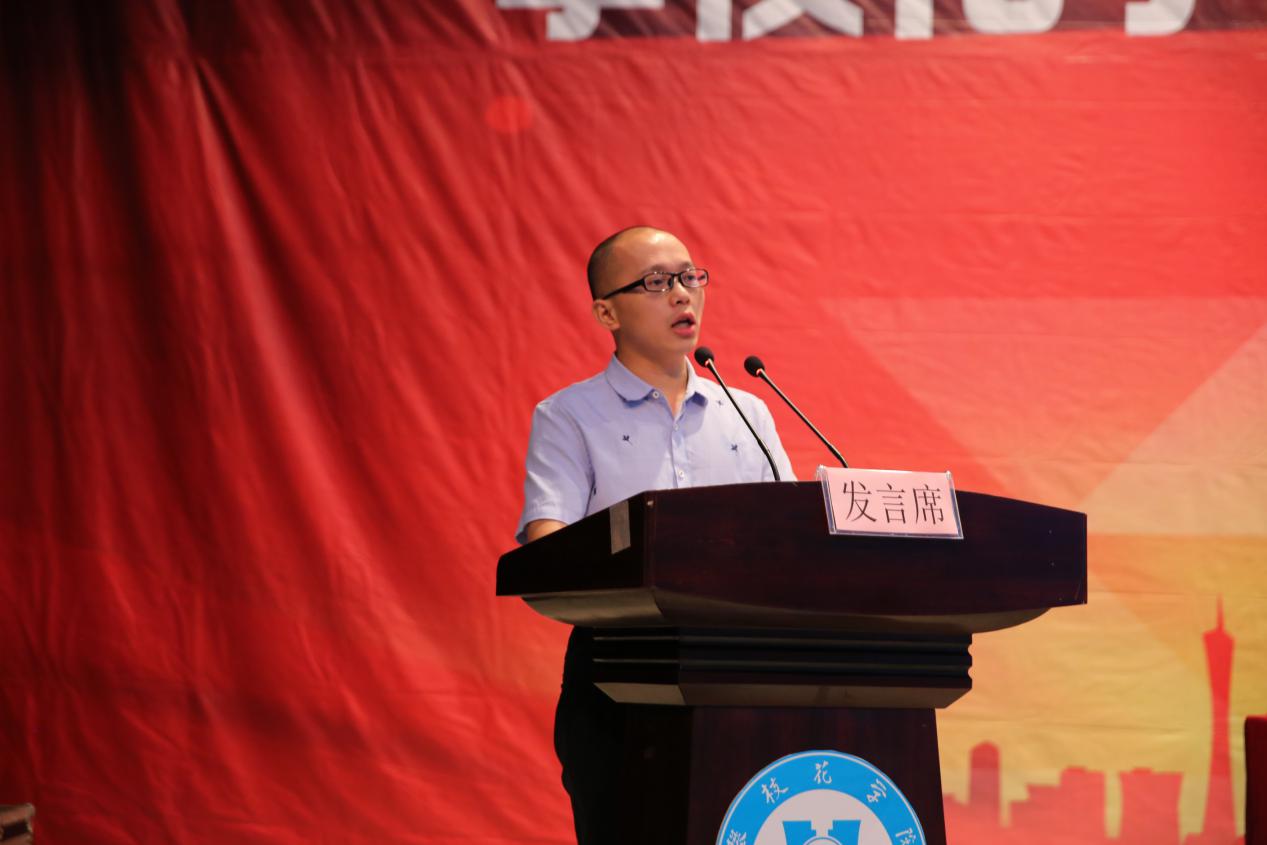 艺术学院姜龙老师作为教师代表发言。他告诫同学们要“学习以恒”、“做事以敬”、“做人以诚”、“心怀感恩”,为祖国的建设添砖加瓦。