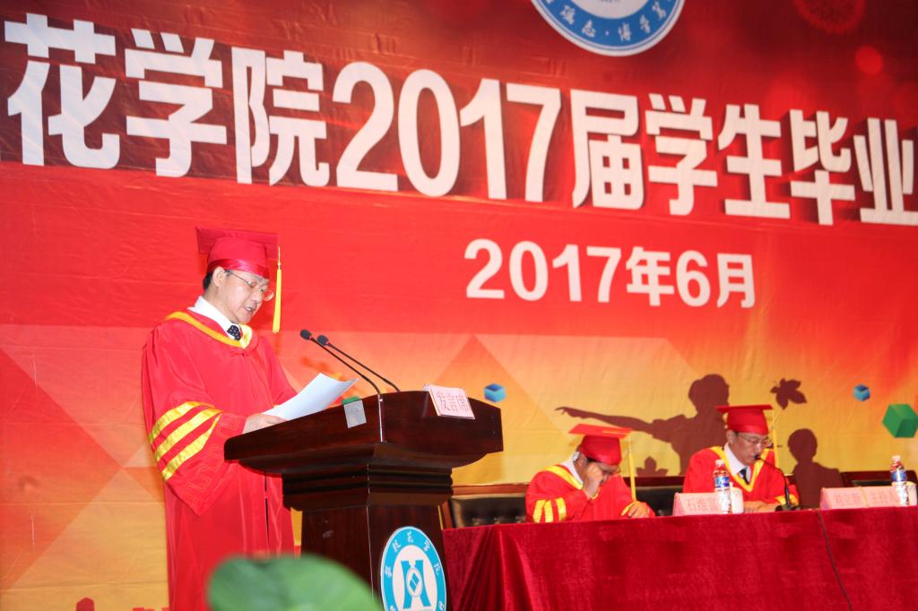 党委副书记、纪委书记李尚志宣读了授予81名同学“学习标兵”荣誉称号的通知文件。党委副书记、校长、校学位评定委员会主席黄双华宣读了西汉姆联2017届本科毕业生第一次授位的相关决议。