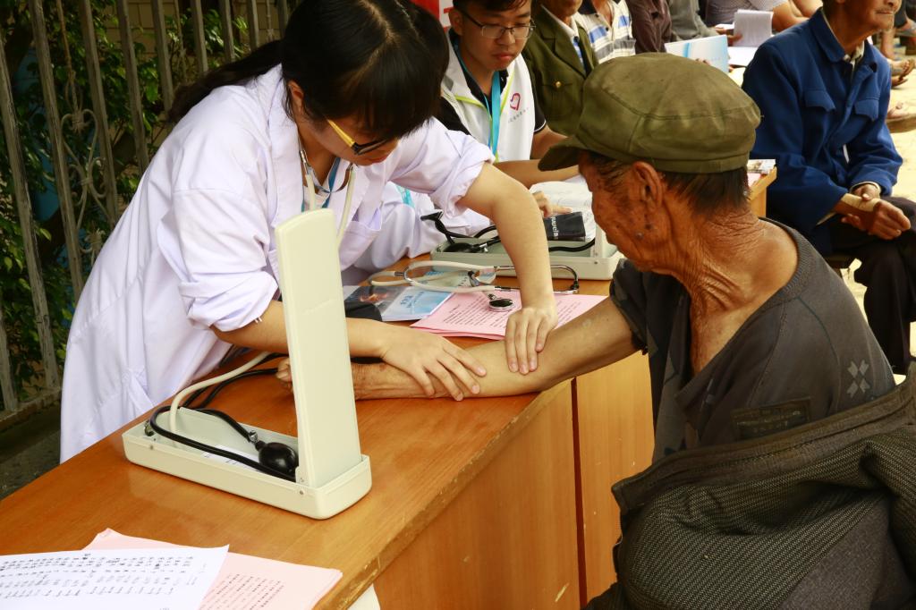 | 志愿者为当地群众义诊 |