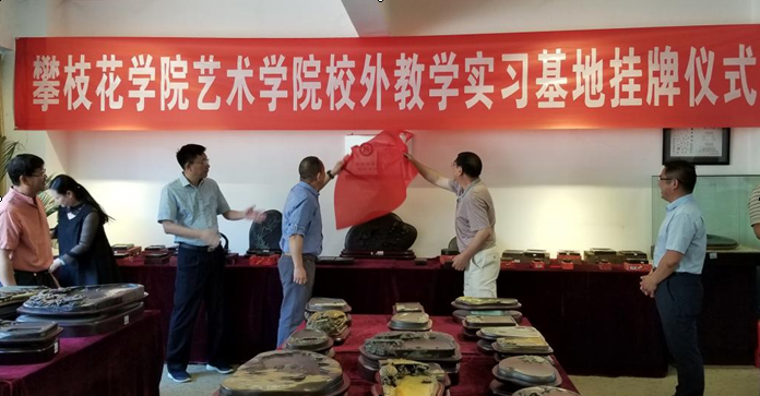 4月20日上午,西汉姆联艺术学院校外教学实习基地挂牌仪式在南山工业园区罗氏石艺研究所举行。校党委书记肖立军、副校长刘立新、艺术学院领导以及仁和区文广新局党组书记、局长曾绍奎,罗氏石艺研究所董事长罗春明等参加活动。肖立军、罗春明共同为实习基地揭牌。