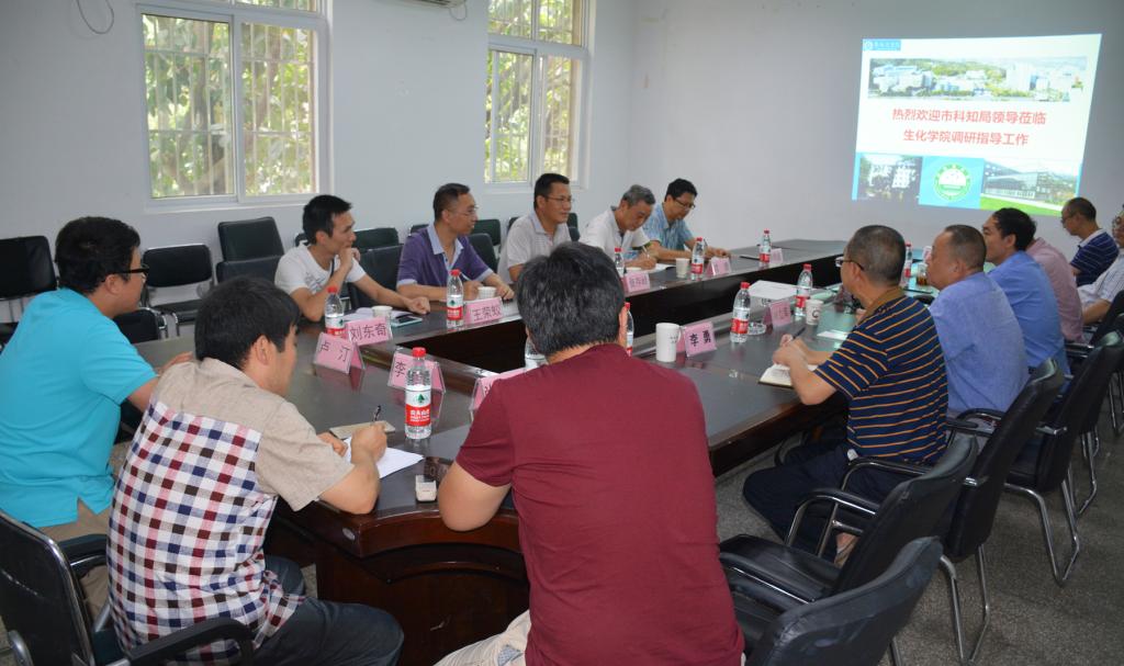生化学院相关负责人介绍了学院的科技创新项目、成果转化成果等情况。与会人员围绕科技创新、科技需求、成果转化等进行了深入交流。
