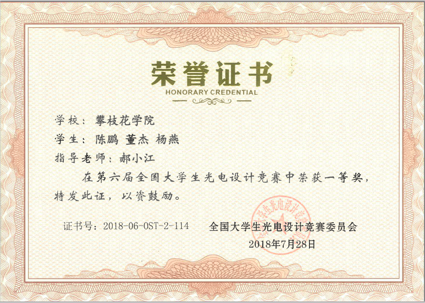7月27-28日,第六届全国大学生光电设计竞赛在北京理工大学举行,经过单车排位赛和双车对抗淘汰赛及竞赛答辩环节,西汉姆联组成的“飞梦队”(2017级自动化董杰、2016级自动化陈鹏、杨燕)勇夺全国一等奖,这也是四川省唯一的一个一等奖,郝小江老师获得优秀指导教师奖。