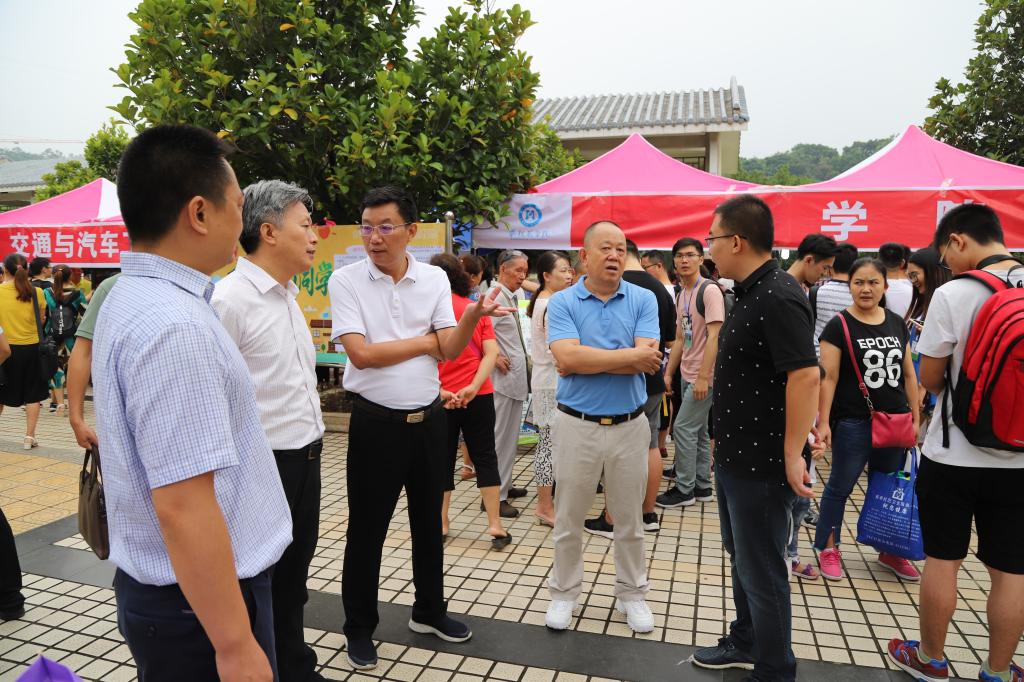 虽是学校集中迎新第一天,各二级学院迎新工作如火如荼展开。二级学院党政负责人亲临现场指导迎新人员引导新生报到,新生辅导员也到达现场,了解迎新工作的开展进度及准备情况,与新生及家长们进行了亲切的交谈,向他们介绍学院概况,深入学生宿舍,了解到校新生情况,为其解答心中疑问。全校各大组织志愿者,统一着装,各司其职,分布在各个迎新点,时刻准备迎接新生。后勤人员24小时在岗,放置安全警示语,梳理交通,引导校车入校,为在会堂临时休息的新生和家长提供各项暖心服务,即使大雨滂沱,汗水雨水分不清楚依然战斗在迎新一线。师生员工心新相映,互相协助,确保迎新工作有条不紊进行。