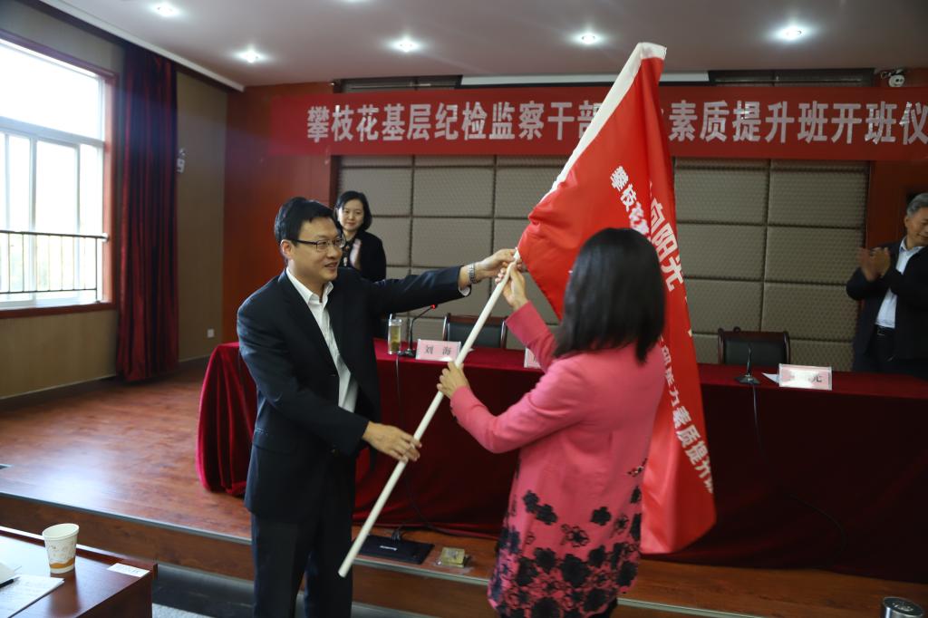 市委常委、市纪委书记、市监委主任刘海为培训班授旗 |