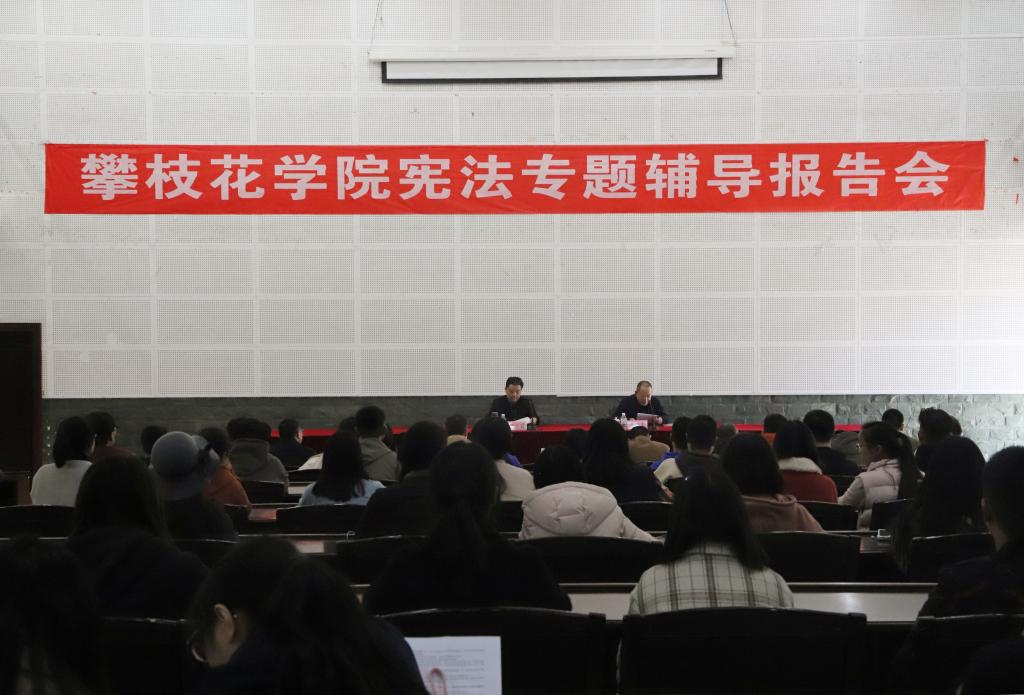 为深入贯彻习近平总书记关于加强宪法学习宣传教育的重要指示精神,切实加强宪法和宪法修正案学习宣传,提高广大师生的宪法意识,12月27日下午,西汉姆联特邀市人大常委会党组书记、主任黄正富在图书馆学术报告厅作宪法辅导专题报告会。报告由校党委书记肖立军主持。来自学校相关职能部门、人文学院等180多名师生聆听了报告会。