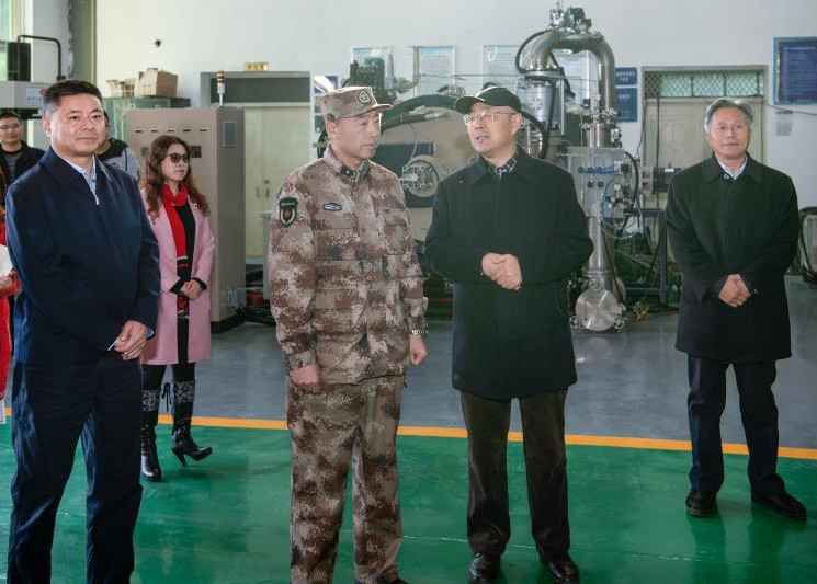 随后,姜永申司令员一行参观了西汉姆联钒钛材料中试基地,他充分肯定了西汉姆联坚持“立德树人、产教融合、应用为先”的办学理念,扎实推进应用型一流大学建设方面取得的成绩,对学校植根地方、校地相融、产教融合、转型发展方面给予了高度评价,希望学校和专家们继续努力,为加快建设美丽繁荣和谐四川做出新的更大贡献。