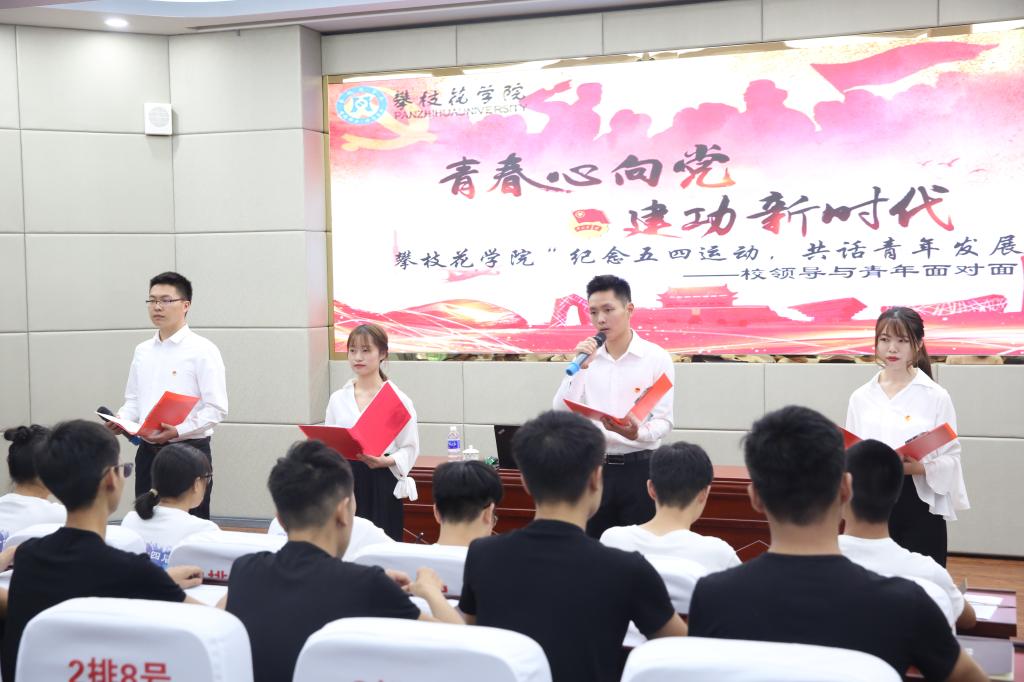 活动前,青年代表献词诗朗诵,表达对五四精神传承的责任感和使命感。来自钒钛学院退伍大学生青年代表周玉杰分享了自己参军入伍的心路历程,表示将继续散发军人的光和热,呼吁当代青年要珍惜当下美好时代,认真学习,扎实学识,勇担时代责任。