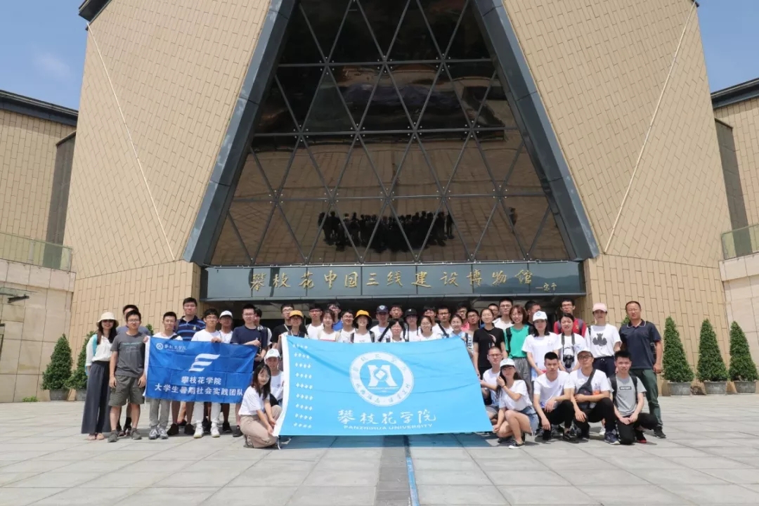 部分社会实践团队师生在攀枝花中国三线建设博物馆前合影