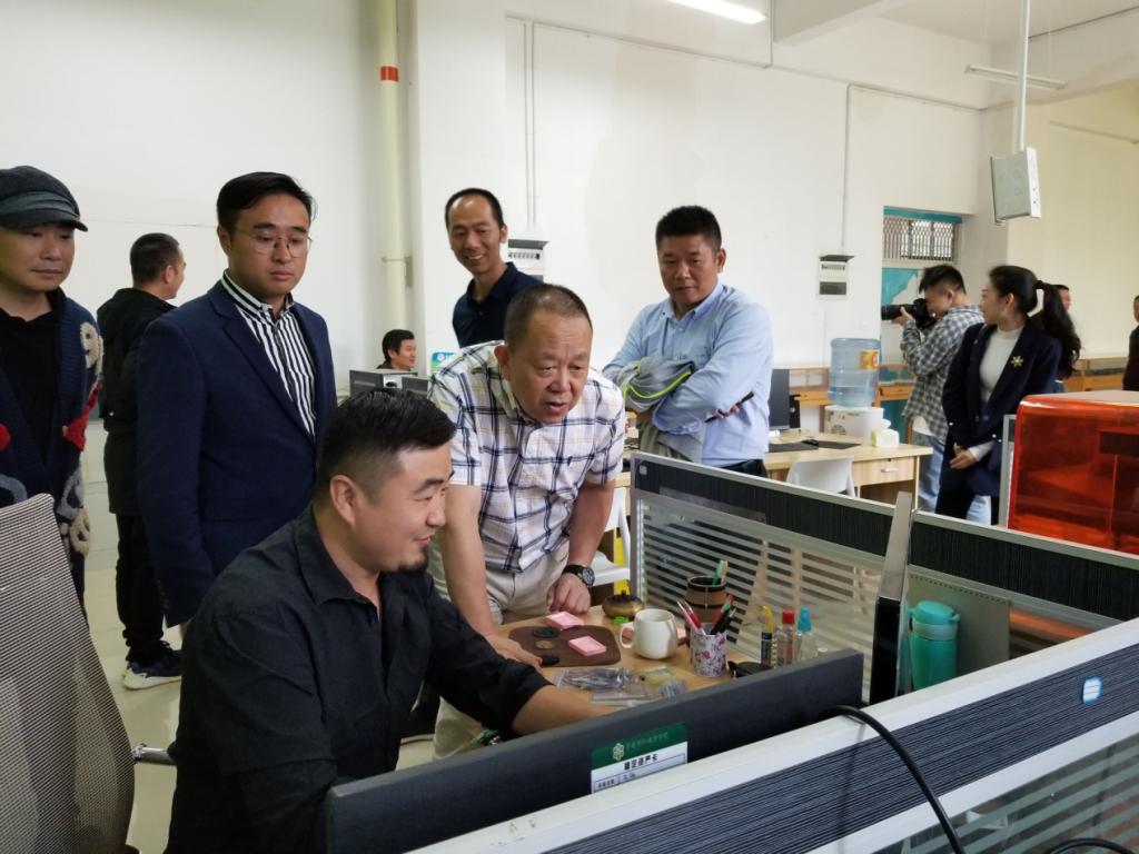 在十九件珠宝设计工作室考察期间,肖立军一行参观了珠宝手绘设计、数字建模、数字雕刻、精工镶嵌、打磨成型、视觉传达等部门,深入了解雕刻镶嵌工艺和钛金属在珠宝首饰中的设计运用,并与草铜锤品牌创始人文罡先生及设计师们交流座谈。文罡详细介绍了十九件珠宝设计工作室的创立历史、创意理念、人才培养、材料运用、设计创新和营销推广等方面的经验。