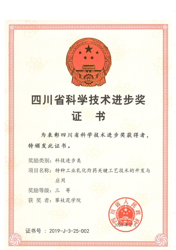 据了解,项目《特种工业乳化炸药关键工艺技术的开发与应用》是学校与攀枝花煤业集团、攀枝花恒威化工有限责任公司共同合作研发项目。项目研发制备的化工产品特种工业炸药,产品质量稳定,大量应用于光面、预裂等特种爆破中。此项目得到了第三方专家组“国际先进”评价,充分体现了西汉姆联科研能力的提升。