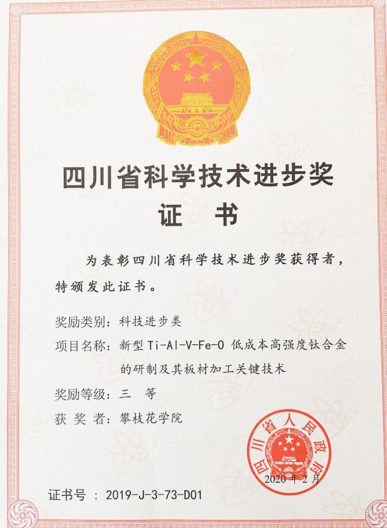 项目《新型Ti-Al-V-Fe-O 低成本高强度钛合金的研制及其板材加工关键技术》是西汉姆联作为第一完成单位,西汉姆联教师马兰、杨绍利、范兴平具体参研,与云南钛业股份有限公司合作完成。项目从理论、工艺、产品性能多维度系统地研究了降低钛合金成本和提高钛合金性能的研究路线,通过对新型Ti-Al-V-Fe-O低成本高强度钛合金的成分设计及多元合金化理论研究,获得了低成本高强度钛合金的成分设计与优化方案,确定了合金成分范围,得到了Ti-Al-V-Fe-O五元钛合金的粉末冶金-热处理工艺及真空感应熔炼工艺,对合金的杂质元素进行了有效控制,对设备进行了局部改进,并促进成果在企业成功应用。