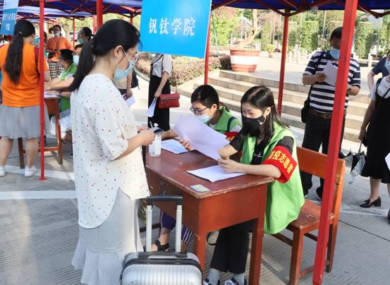 学生入校时排队等候保持一米以上间距,有序通过测温门做体温检测和人脸识别,到二级学院报到点核验身份并出示健康码等核验资料。