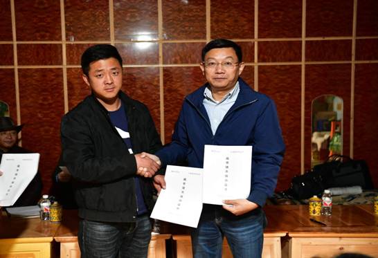 签订《betway西汉姆联官网帮扶热郎宫村发展藏香猪养殖资金支持协议》