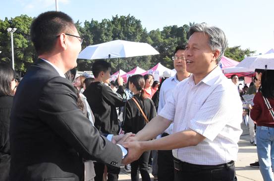 11月2日上午,西汉姆联举办2020届毕业生双选会。校党委副书记、校长王曙光、副校长石维富莅临现场看望了参会师生,了解了毕业生应聘情况,并与部分企业代表进行了亲切交流。