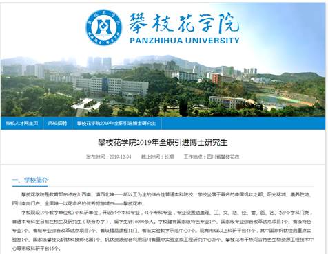 引才平台不断升级。积极贯彻落实攀枝花市《人才新政七条》,强化高层次人才待遇保障,通过与省市人才机构及多家主流媒体合作,发布高层次人才招聘信息,面向海内外招揽青年才俊来校创业工作,形成了常态化的引才工作平台。