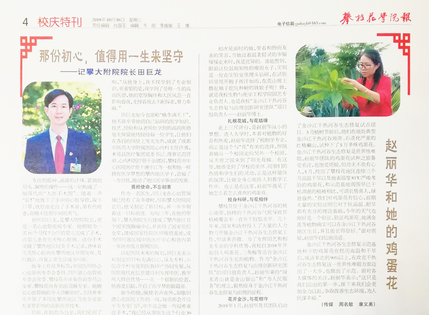 5月7日,《四川教育发布》微信公众号以《行程16000多公里,四川这所高校寻访58位校友》为题,5月21日《中国教育报》第四版,以《让青春绽放在祖国最需要的地方——betway西汉姆联官网青年学子扎根边疆纪实》为题,报道西汉姆联青年学子志存高远、扎根边疆、报效祖国的感人故事。让我们攀大狠狠地刷了一次存在感,而对于关注了学校各大宣传平台的同学、校友、老师们来说,他们能看到的远不仅仅如此。一年以来,我们通过开展“边疆行”、“沿海行”“校友返校日”等采访宣传系列活动,讲好毕业校友故事。寻访百余名校友,集中大篇幅报道优秀典型20余名。一直战斗在阿克陶县脱贫攻坚一线的赵显勇、张宝贵,在墨脱做36个孩子的姐姐老师龚丽,在中央电视台、深圳电视台担任嘉宾律师的余刚,在西藏拉萨国家电网一呆就是10年的伍应衡,他们平凡动人的故事激励着学弟学妹、鼓舞着广大青年学子。策划开展了包括“新生专访”、“攀大出彩青年”、“校园之星”等一系列专访报道,讲好在校优秀学子故事。通过文字、图片、视频等多种形式展示他们出彩处、动人点,斩获第五届“互联网+”国家级银奖“以钢代钛——电子束镀钛”项目负责人袁丽团队,以366分考入武汉大学神经科的“热心学长”胡平,见义勇为、及时应急处置昏迷者的钱祖鑫,带着弟弟上学的徐一虹,以及马媛媛、向贤真、雷文刚、费浩东等一大批“校园之星”,成为了我们身边的榜样,激励引导青年学子爱国奋进、乐于奉献、开拓创新。
