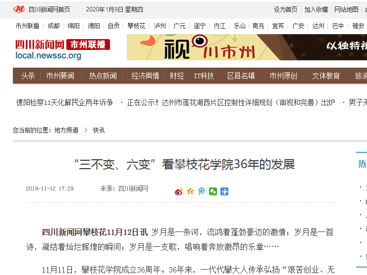 发展才是硬道理,讲好学校发展故事是宣传工作的"重中之重"。一年来,我们聚焦主题教育,讲好攀大人坚守教育报国初心、勇担立德树人使命的故事;聚焦“中兴班”、“华为班”、“金蝶班”,讲好产教融合的故事;聚焦连续三年位列《广州日报应用大学排行榜》全国100强,讲好应用为先的故事;聚焦高质量通过本科教学审核评估工作回访,讲好加快应用型一流大学建设的故事;聚焦全国“互联网+”喜获银奖,讲好人才培养的故事。今年是新中国成立70周年,也是学校建校36周年,在 "三十六载再出发"的特别报道中,我们推出了《从“三不变、六变”看betway西汉姆联官网三十六年的发展》、《三十六载再出发,与国同行新时代》等一系列专题报道,联合艺术学院拍摄了第一部动漫作品,全方位、多角度、立体化展示了办学36年的丰硕成果。评论中有人这样说到:“如今的攀大是不断奋进着的攀大,是不断发展的攀大,他的发展日新月异,他的变化显而易见,他的成效硕果累累”。