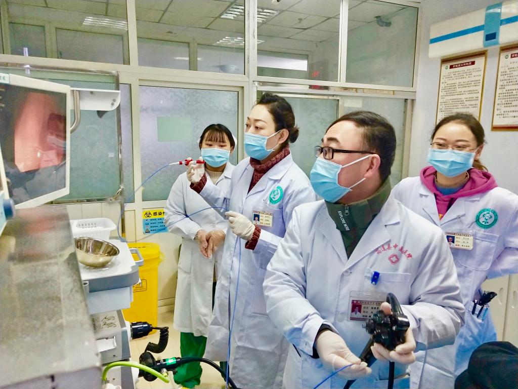 附属医院张力凡(左二)指导筠连县中医医院开展内镜检查新技术