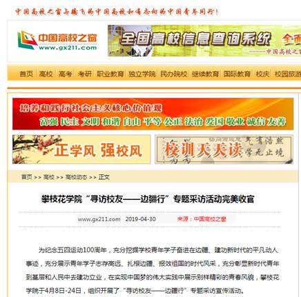 相关采访信息得到了《人民网》、《中国高校之窗》、《四川新闻网》、《四川教育发布》、《攀枝花日报》等多家媒体的陆续关注报道,引起了强烈反响。