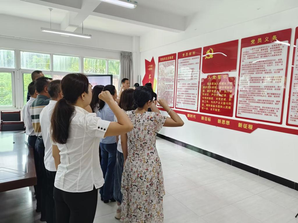 会议期间,党员同志们齐唱红歌“三大纪律八项注意”,并重温入党誓词。