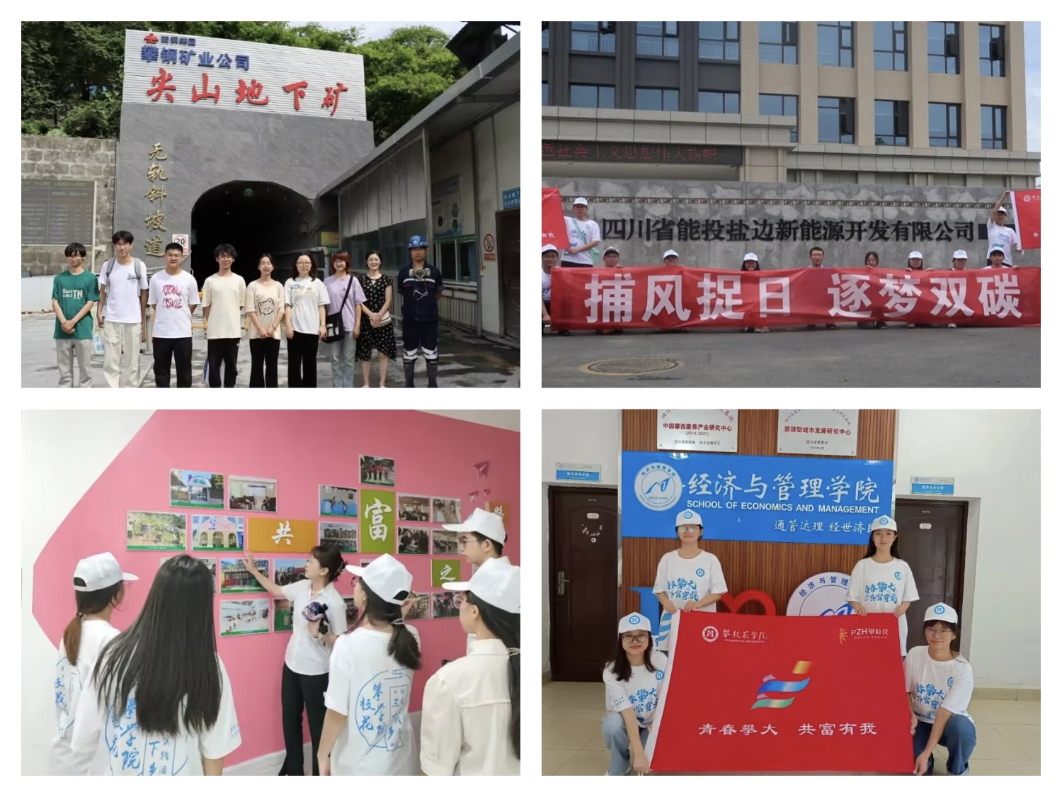 钒钛学院“三线‘钒’星,富川之梦”团队前往攀钢集团,就工艺流程、技术创新、环境保护等热点问题与工作人员进行了深入的交流与探讨。智能制造学院“智造•裕农”实践团队以攀枝花盐边县红格镇昔格达村为例,针对攀枝花市乡镇农业机械化普及情况,调研评估乡镇农业机械化、智能化的运用情况和存在的问题,为攀枝花共同富裕试验区的农业机械化发展提供参考意见。经济与管理学院“开创者”实践队、阳光“童”行实践队前往银江镇恒德社区开展以“探索攀枝花共富试验区高质量发展建设以及城乡结合‘幸福邻里’共富新模式——以银江镇恒德社区为例”为主题的实践活动,通过了解银江镇恒德社区的“恒德妇幼特色一条街”,探索推动社区集体经济发展、提高居民收入水平和生活质量的方式。电气信息工程学院“捕风捉日,逐梦双碳”团队前往四川省能投盐边新能源开发有限公司,通过专家对风力与太阳能发电的介绍,实践队员了解到风能和太阳能的转换过程、发电技术的现状以及发展趋势。
