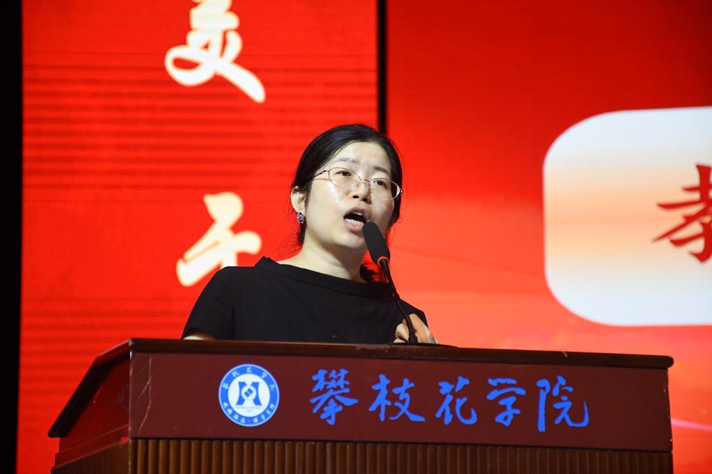 教师代表陈敏老师上台发言,她以自身的教学、科研经验为例,鼓励新生们要珍惜学习机会,勇于挑战自我,积极参与各类学术活动和社会实践,不断提升自己的综合素质。