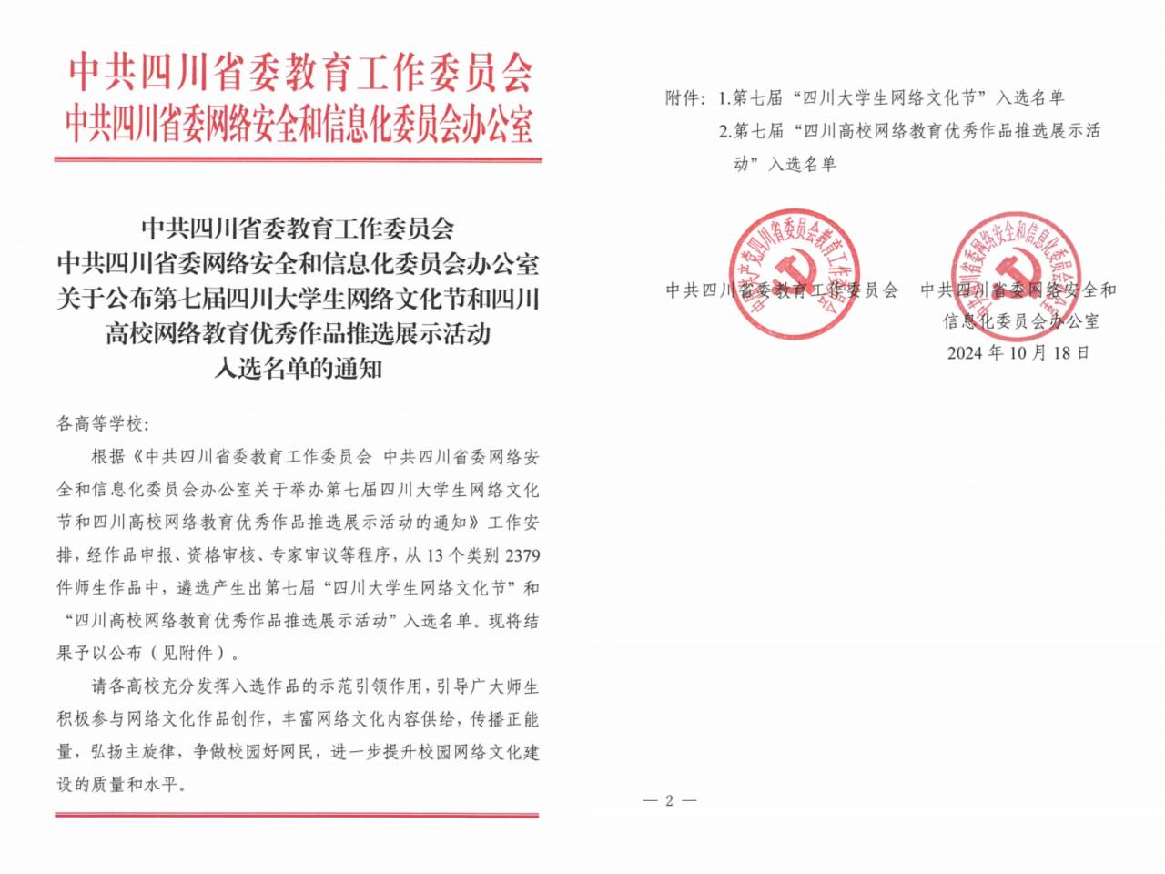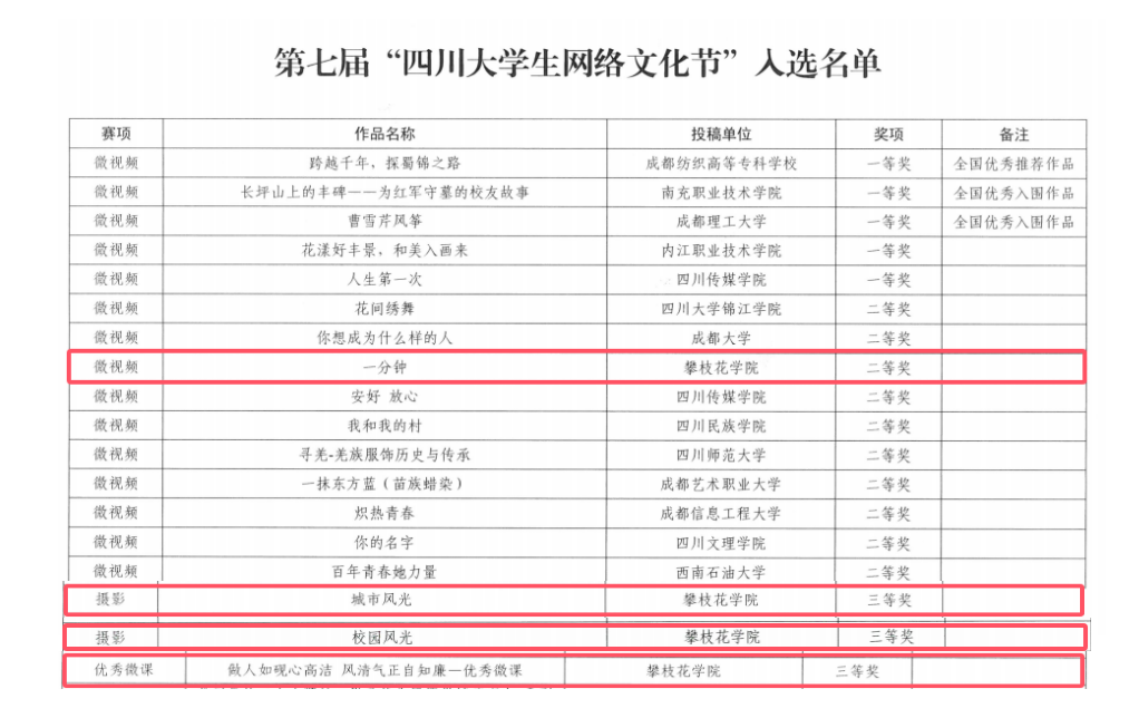 近日,由中共四川省委教育工作委员会、中共四川省委网络安全和信息化委员会办公室主办的第七届四川大学生网络文化节和四川高校网络教育优秀作品推选展示活动遴选结果揭晓,西汉姆联师生创作的网络文化作品荣获二等奖1项,三等奖3项。