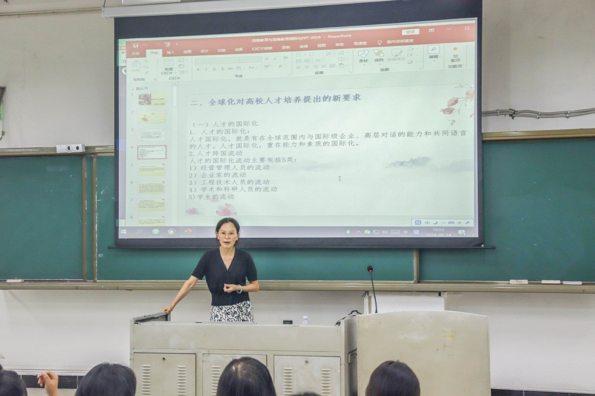 国际交流与合作处处长崔朝晖以《全球化对人才的要求》为题,从全球化对教育的影响、高等教育领域的人才培养以及国际交流与合作赋予当今大学生的就业机会等方面拓展了学生的国际化视野。
