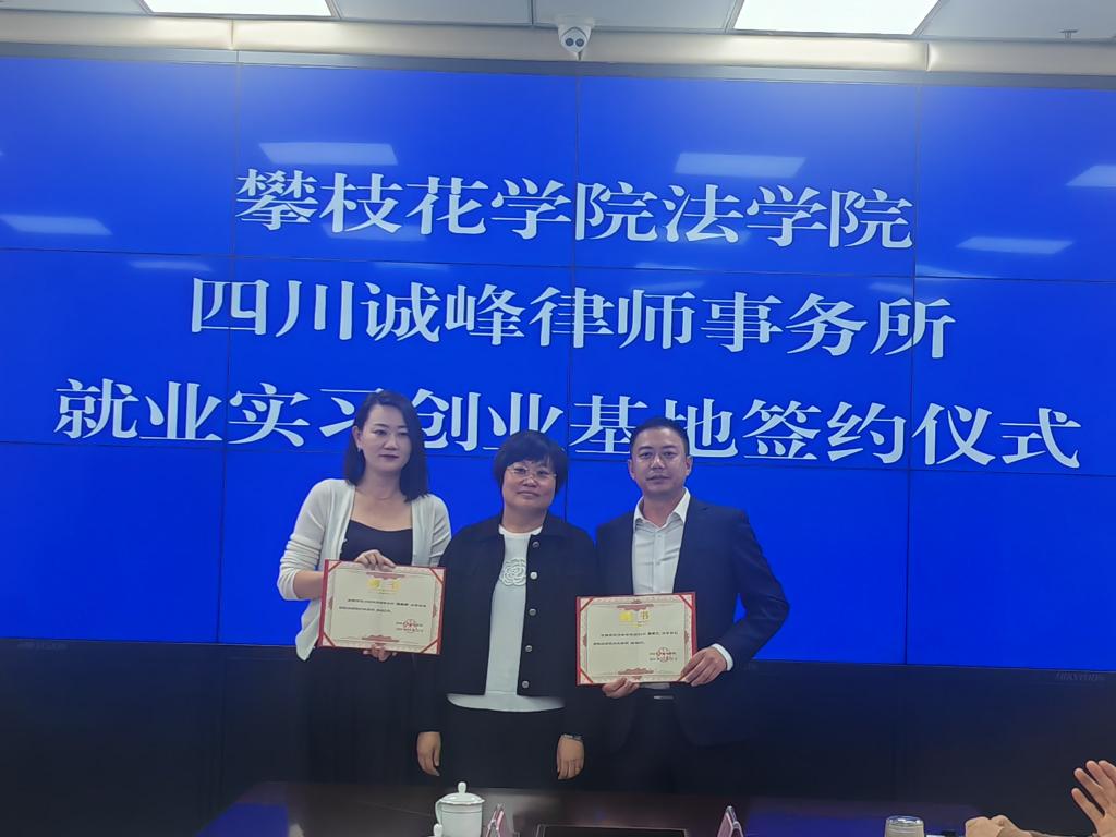 与会人员围绕法律服务实践、产教融合、高质量就业等方面进行了深入交流探讨,双方达成了初步合作意向。随后,张琳为四川诚峰律师事务所授牌“betway西汉姆联官网法学院就业实习创业基地”,为蒋风云等律师颁发行业导师聘书,并与蒋风云共同签署了《法学本科生就业实习创业基地共建协议书》。