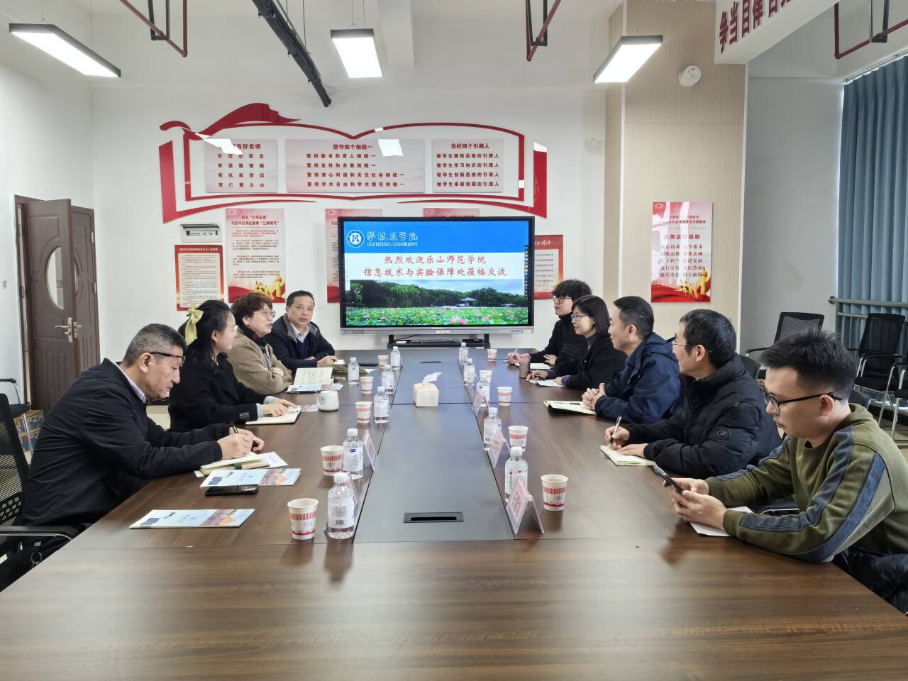 12月11日,乐山师范学院信息技术与实验保障处处长刘才铭一行到我校公共实验教学中心和网络与计算中心考察调研。座谈会在产教融合大楼实验中心会议室举行。网络与计算中心副主任叶凌雪、公共实验教学中心副主任蒋燕(主持工作)等有关同志参加了座谈,会议由叶凌雪主持。