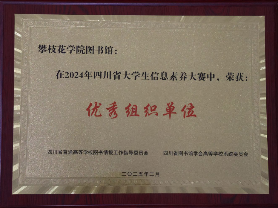 近日,由四川省高校图工委主办的2024年四川省大学生信息素养大赛圆满落幕。西汉姆联参赛队伍荣获三等奖1项、优秀奖1项,图书馆荣获优秀组织奖。其中,23级临床医学专业本科2班吕玉坤、21级临床医学专业本科2班陶银、21级临床医学专业本科1班杨靖蕾荣获三等奖,23级法学专业本科2班艾佳蕾和王婷、22级英语专业本科2班谢源荣获优秀奖。