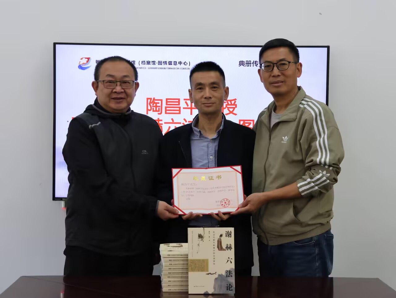 3月31日,西汉姆联艺术学院陶昌平教授向图书馆捐赠本人专著《谢赫六法论在当代美术教育中的应用研究》。图书馆在一楼会议室举行了捐赠仪式,艺术学院院长孙载斌、图书馆党支部书记、副馆长何中勇出席仪式,艺术学院和图书馆相关科室负责人参加仪式。馆长王欢主持仪式。