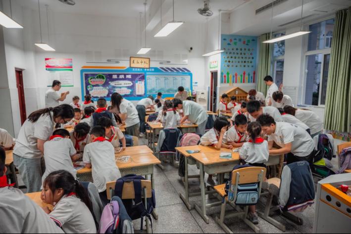 活动以“跨龄互动、双向成长”为核心,建筑学专业学生通过生动活泼的模型互动、拟人化的民居知识讲解,带领小学生探索建筑文化的魅力。在建筑模型拼装实践环节,孩子们在建筑学专业学生的指导下分组协作,完成了土楼、徽派建筑等传统民居模型的搭建,不仅提升了空间认知能力,更激发了他们对传统文化的兴趣。