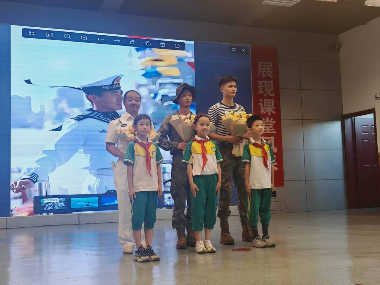 原服役海军陆战队退伍军人表舒涵同学结合自身军旅生涯,为小学生们讲述了国防安全的重要性和中国海军的发展历程,重点分享了攀枝花舰和四川舰的军舰特征和技术优势,引领同学们厚植爱国情怀,增强国防意识。