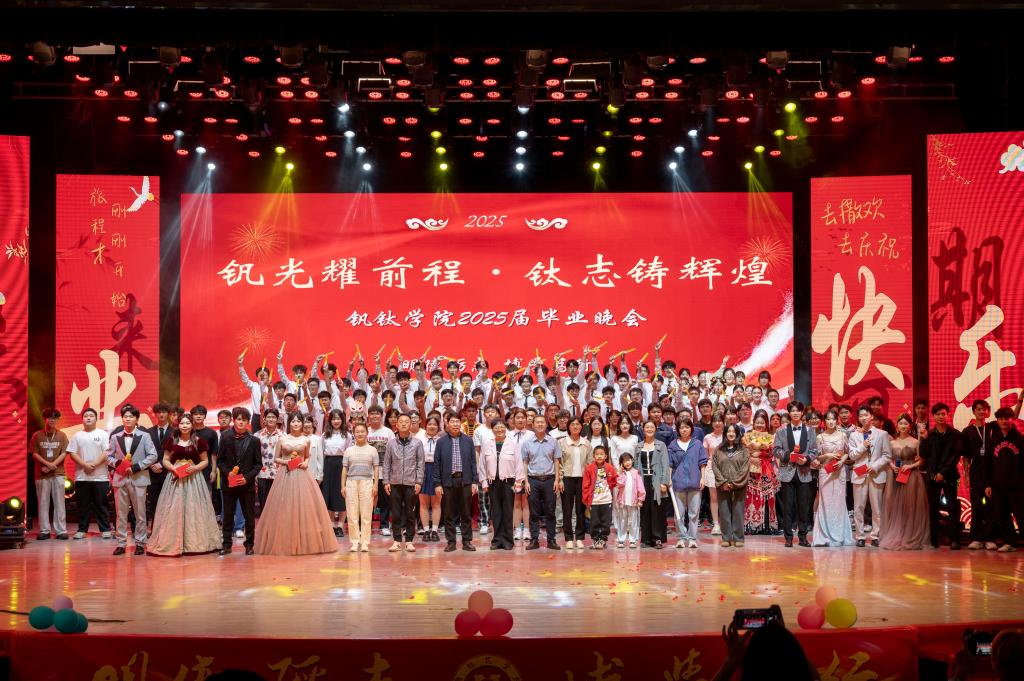 524日,钒钛学院在阳光会堂举行2025届“钒光耀前程,钛志铸辉煌”毕业晚会。学校党委常委、副校长朱云生,学工部、公共实验教学中心、教务处、科研处等相关部门领导应邀出席晚会,钒钛学院领导班子、师生千余人观看晚会。
