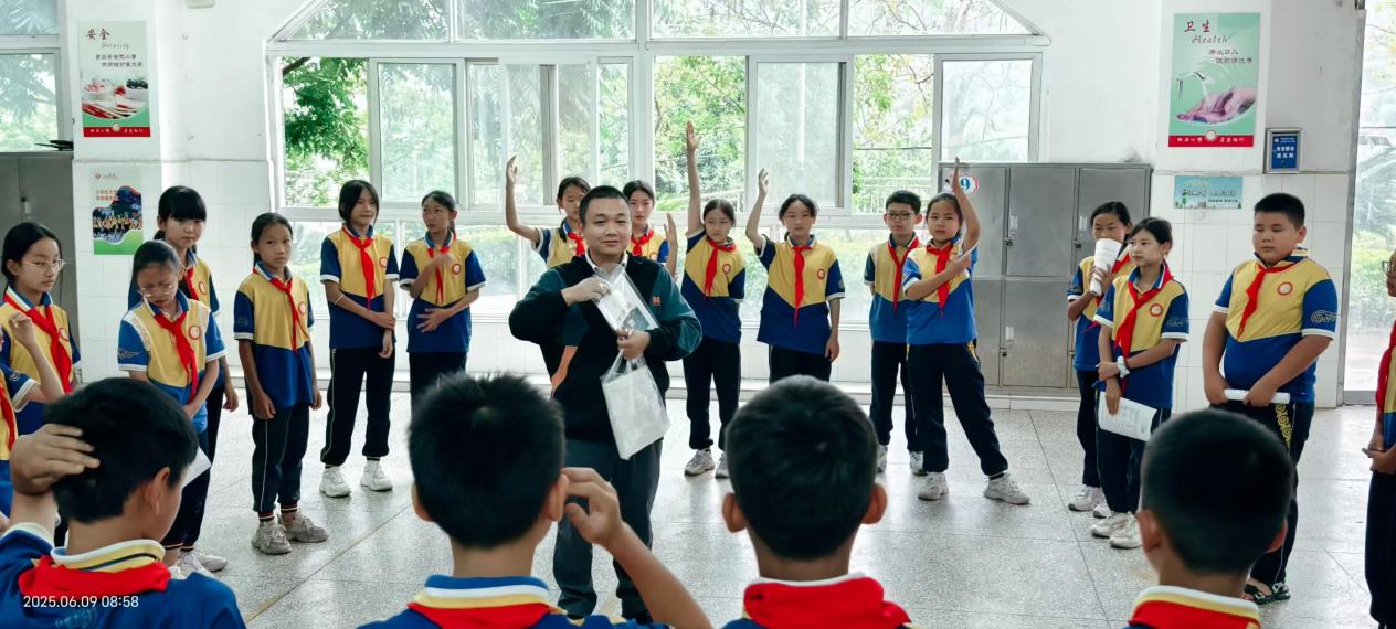 陈奉雷博士为学生们带来的是趣味拓展活动课。他以生动有趣的故事和互动小游戏开场,迅速吸引了学生们的注意力。学生们在游戏中相互配合、互相鼓励,培养了团队协作能力和竞争意识。