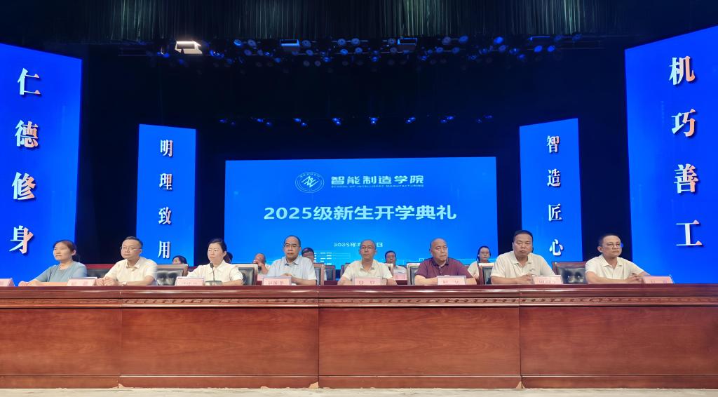 9月10日下午,智能制造学院2025级新生开学典礼在阳光会堂举行。学院党委书记刘东康、副院长魏弦(主持工作)、副院长周振,以及学院各科室中心负责人、研究生辅导员、2025级新生辅导员出席典礼,与全体本、硕新生共同开启大学新生活。本次典礼由学院党委副书记、纪委书记简宇苑主持。
