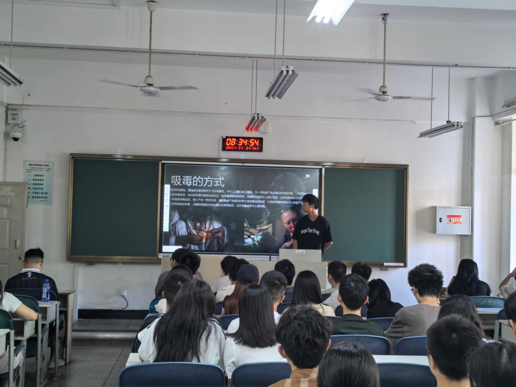大二至大四学生则以班级为单位,聚焦“毒品预防与健康生活”主题召开班会。同学们通过案例研讨剖析毒品危害,借助线上知识问答巩固防毒要点,在互动中深化认知、强化拒毒决心。截至913日,各学院已陆续完成“禁毒开学第一课”启动工作。