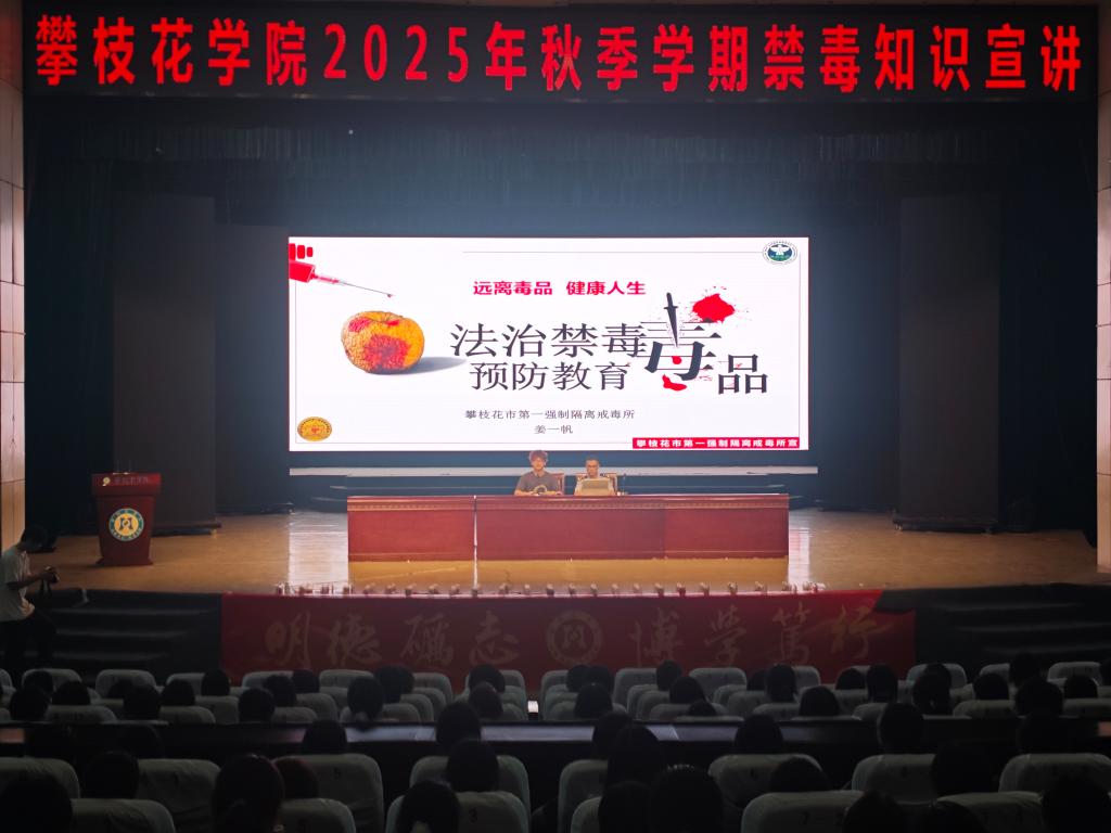 912日晚,学校特邀攀枝花市第一强制隔离戒毒所医疗岗医师、宣讲民警姜一帆在阳光会堂围绕新型毒品识别、涉麻精药品危害、防毒实用技巧三大维度,为1000余名大一新生开展大型禁毒知识讲座,将实用的防毒知识化作青春“防护盾”。